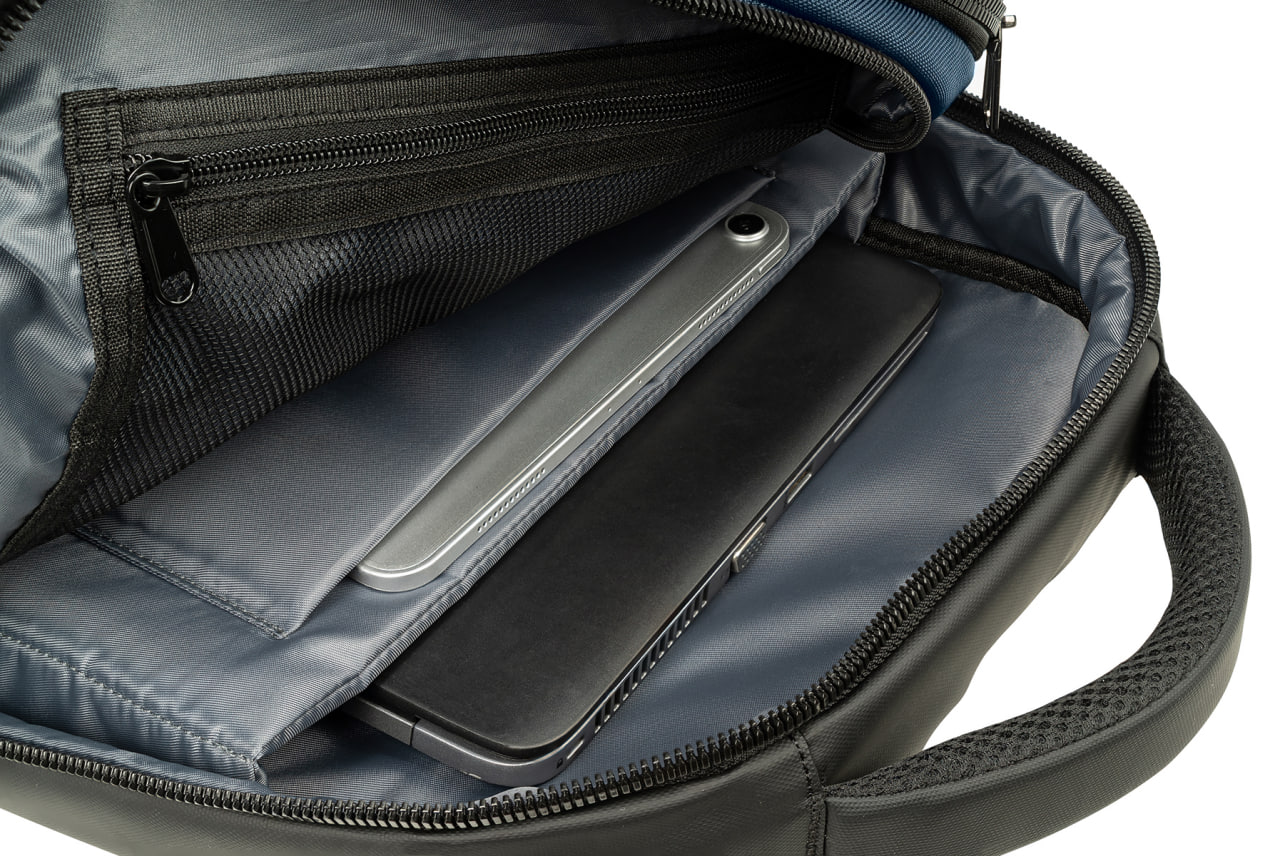 Balo AGS Tucano Marte Gravity có 1 ngăn chính và 4 ngăn phụ. Hai khoang chống sốc dành cho laptop hoặc máy tính bảng nằm ở trong ngăn chính. Một túi lưới khóa kéo nằm đối diện giúp bạn lưu trữ các vật dụng như pin dự phòng, chuột máy tính hoặc chìa khóa phòng/nhà.