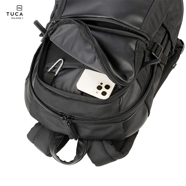 Mặt sau của balo Tucano Bravo AGS thiết kế thêm một chiếc túi ẩn tiện lợi, vô cùng an toàn để bạn có thể mang theo điện thoại, khi đang di chuyển trên đường có thể lấy ra dễ dàng để sử dụng. Một số chi tiết thiết kế rất phù hợp với người chuyên vận động như lớp đệm êm ái giúp thoát khí và mồ hôi cơ thể ở phần lưng và dây đeo vai. Hai bên còn bố trí hai ngăn đựng ô và bình nước tiện lợi