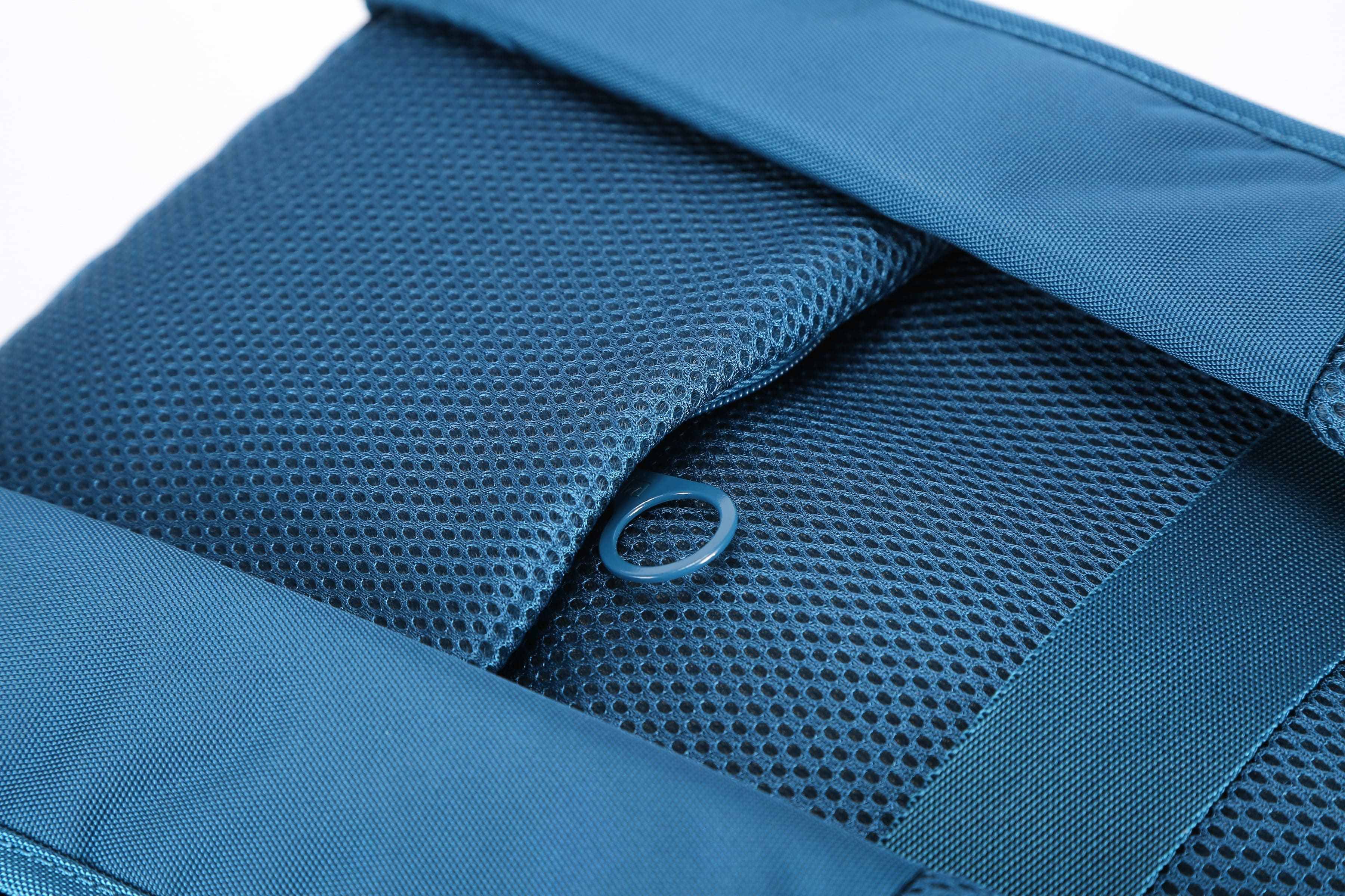 Khóa kéo được thiết kế ẩn, tinh tế, đồng thời hạn chế tình trạng bụi bám, làm giảm thiểu độ nhạy bén của đường kéo. Mặt lưng thoáng khí, hút ẩm, tạo cảm giác thoải mái, êm ái khi đeo trong thời gian dài hoặc trong lúc vận động thường xuyên với công việc.
