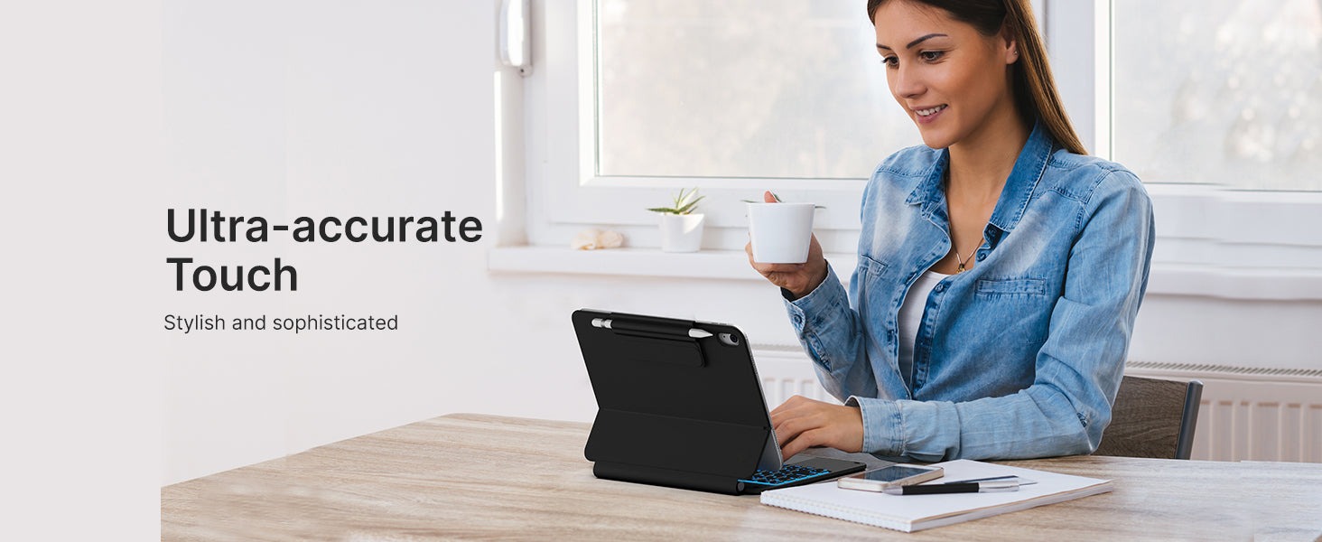 Ốp bàn phím iPad Pro 11-inch thế hệ 3–4 được trang bị trackpad độ nhạy cao, giúp bạn điều hướng iPad bằng cử chỉ, chỉnh sửa tài liệu, lướt web, trình chiếu nhanh chóng, tăng hiệu suất làm việc.