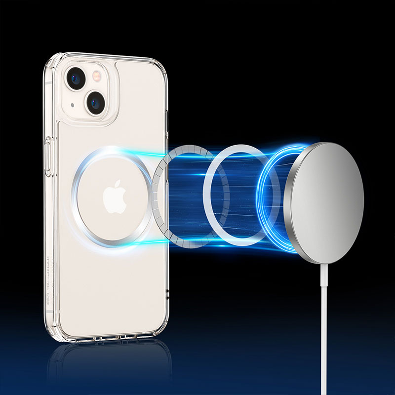 MagSafe là tính năng mới kể từ các dòng iPhone 12 cho đến nay. Tính năng này cho phép người dùng sạc không dây hiệu quả và nhanh chóng nhờ từ tính ở mặt sau thiết bị. Nắm bắt được điểm mới từ Apple, các hãng phụ kiện cũng đã nhanh chóng tích hợp tính năng vào trong ốp lưng.