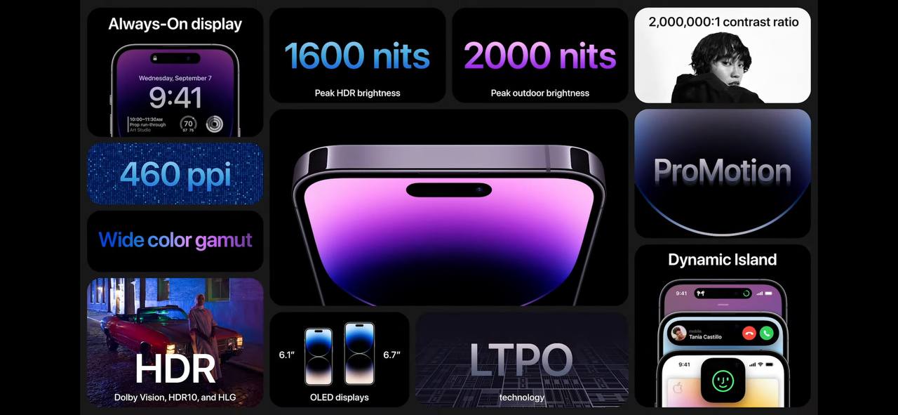 Hai mẫu iPhone 14 Pro và iPhone 14 Pro Max đánh dấu lần đầu tiên Apple phân biệt chip giữa phiên bản tiêu chuẩn và cao cấp. Điểm nhấn ấn tượng nhất trên bộ đôi sản phẩm đó là phần “tai thỏ” đã biến mất. Thay vào đó là một đường cắt hình viên nhộng được gọi là "Dynamic Island", chứa các thành phần của Face ID và một đường cắt hình tròn thứ hai cho camera trước. Apple cũng giới thiệu tính năng màn hình luôn bật (Always-on) trên bộ đôi iPhone 14 Pro và 14 Pro Max, có khả năng hiển thị các hoạt động trực tiếp, đồng hồ, tiện ích và hình nền động sẽ mờ đi nhưng vẫn có thể đọc được bằng cách sử dụng tốc độ làm mới 1 Hz. Giống như Pro Display XDR, màn hình trên iPhone 14 Pro và 14 Pro Max là Super Retina XDR có độ sáng HDR ở 1.600 nits và đạt đỉnh lên đến 2.000 nits. Các thông báo nằm sau Dynamic Island - một tên gọi mới cho hệ thống Face ID. Hoạt ảnh và chuyển tiếp sử dụng cảm biến để hiển thị nội dung thích ứng với các hoạt động của ứng dụng. Máy đi kèm chip A16 Bionic mạnh mẽ với 6 lõi CPU và 5 lõi GPU cho các tác vụ đồ họa chuyên sâu. iPhone 14 Pro và 14 Pro Max cũng có thể phát hiện sự cố nhờ các con quay hồi chuyển tiên tiến. Đồng thời, Apple còn trang bị một tính năng vệ tinh mới để thực hiện liên lạc SOS trong môi trường không có tín hiệu di động. Chip A16 mới này giúp cung cấp năng lượng cho các hình ảnh động mượt mà có trong tính năng Dynamic Island và cũng sẽ cung cấp năng lượng cho hệ thống camera mới của Apple. Sự kiện ra mắt iPhone 14 Pro và 14 Pro Max đánh dấu lần đầu tiên iPhone chuyển từ cảm biến 12 megapixel sang cảm biến 48 megapixel. Cảm biến mới có thể chụp ảnh với kích thước 12 MP sắc nét bằng cách kết hợp 4 pixel thành 1 pixel ảnh lớn để mang lại khả năng thu sáng nhiều hơn. Kích thước cảm biến lớn hơn cũng cho phép phóng to gấp 2 lần ở kích thước đầy đủ nhờ việc cắt cảm biến 48 MP mà không làm giảm chất lượng. Máy ảnh siêu rộng vẫn là 12 MP có khả năng thu sáng gấp 3 lần, điều này cho phép người dùng chụp ảnh macro tốt hơn nhiều. Cinematic Mode có thể quay video 4K đầy đủ ở tốc độ 30 khung hình/giây nhờ bộ xử lý tín hiệu hình ảnh mới. Hệ thống máy ảnh siêu rộng mang đến những cải tiến về chụp ảnh macro cũng như ánh sáng yếu. Hệ thống đèn flash trên camera sau cũng được thiết kế lại để cung cấp ánh sáng gấp đôi và phản ứng với độ dài tiêu cự của ảnh. iPhone 14 Pro Series có 4 tùy chọn phiên bản màu sắc gồm: Trắng, Đen, Tím và Vàng. Khách hàng có thể mua iPhone 14 Pro với giá từ 999 USD, trong khi giá cho iPhone 14 Pro Max sẽ từ 1.099 USD. Đơn đặt hàng trước dành cho thiết bị sẽ bắt đầu từ ngày 9/9 và chúng sẽ lên kệ vào ngày 16/9. Nguồn: VTC NEW