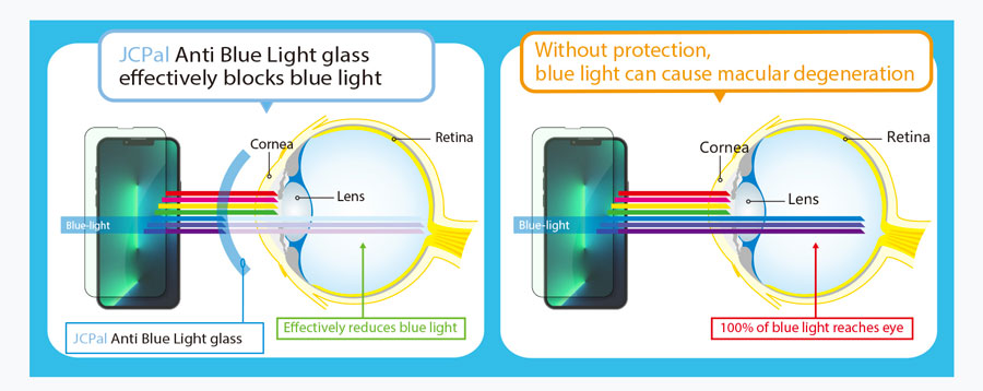 Kính cường Lực JCPAL Chống Ánh Sáng Xanh giúp chặn dòng ánh sáng năng lượng cao (HEV) một cách hiệu quả, bảo vệ an toàn cho đôi mắt của bạn, giúp bạn giảm mỏi mắt, khô và kích ứng.