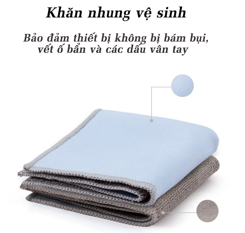 Ngoài ra, bộ sản phẩm dung dịch vệ sinh JCPal còn được đính kèm một khăn nhung (15x15cm) để bạn lau khô lại một lần nữa sau khi đã sử dụng dung dịch Mix Screen Acohol-Free, bảo đảm thiết bị không bị bám bụi, vết ố bẩn và các dấu vân tay.