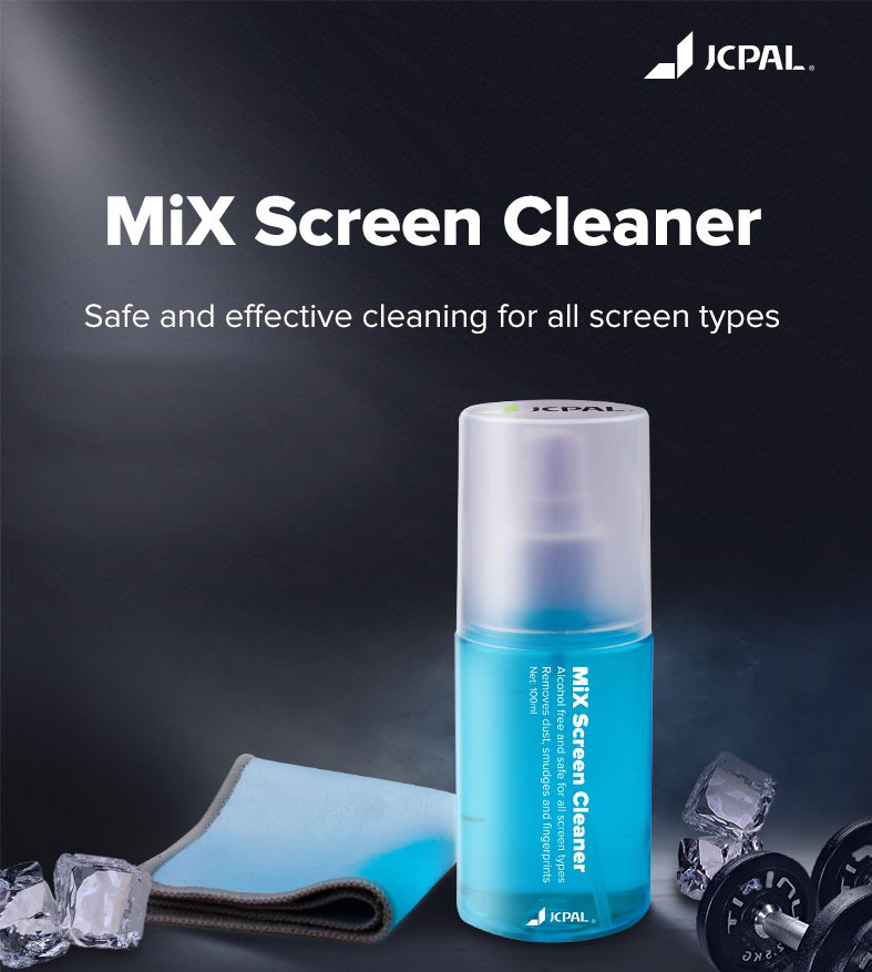 Để mang đến sự yên tâm cho các tín đồ công nghệ, JCPal đã nghiên cứu và nâng cấp loại dung dịch mới, trên cơ sở phiên bản dung dịch vệ sinh Cleaning Solution trước đây, với tên gọi mới Mix Screen Acohol-Free. Chai dung dịch có thể tích 100 ml, với màu xanh dương đặc trưng, không chứa chất cồn - là những chất dễ gây hư hại đến màn hình thiết bị, phai màu máy zin.