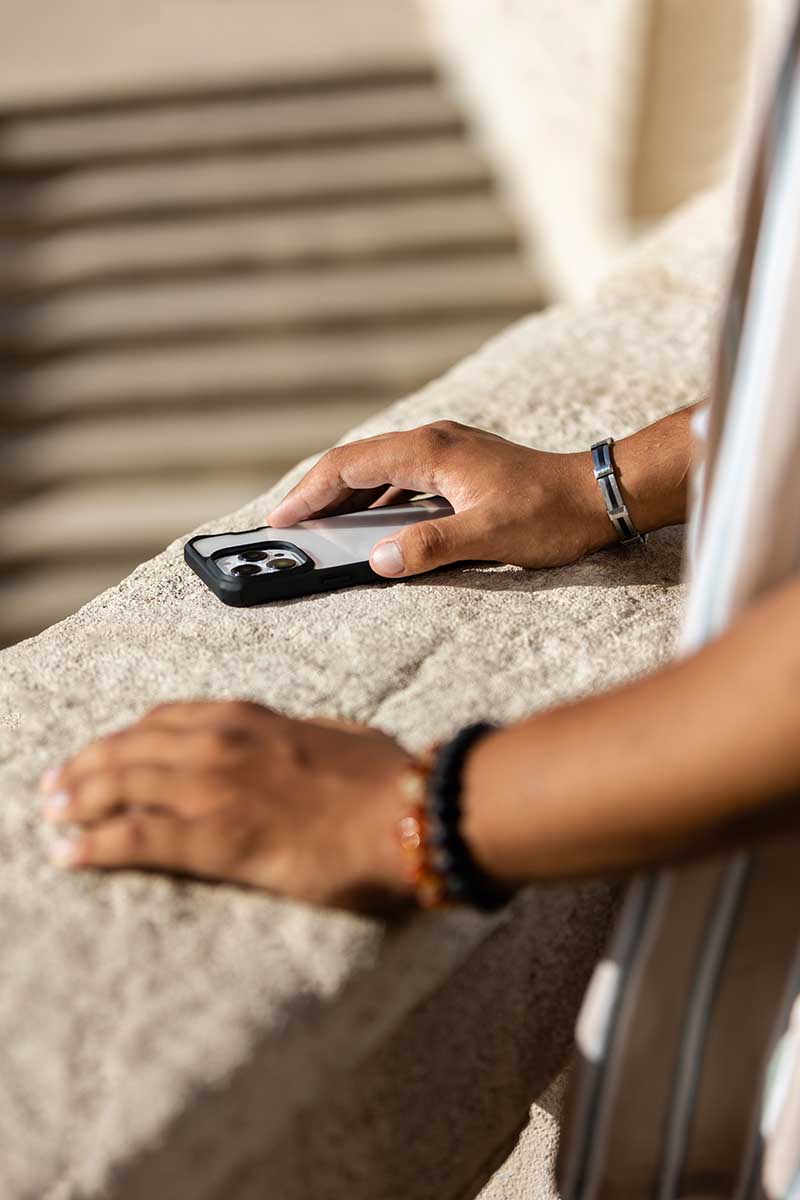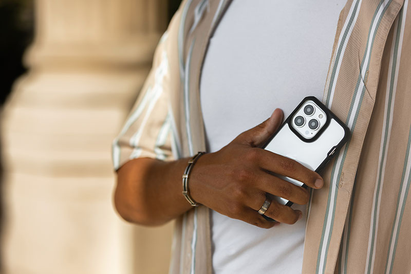 Thiết kế Ốp lưng có phần viền cạnh màn hình và camera nhô cao hơn, giúp hạn chế tối đa việc ma sát khi bạn vô tình đặt để ở những nơi dễ trầy. Nói không với tình trạng lỏng lẻo, Ốp lưng Hybrid R Solid Magsafe có thiết kế ôm khít, bao quanh viền smartphone một cách chắc chắn.