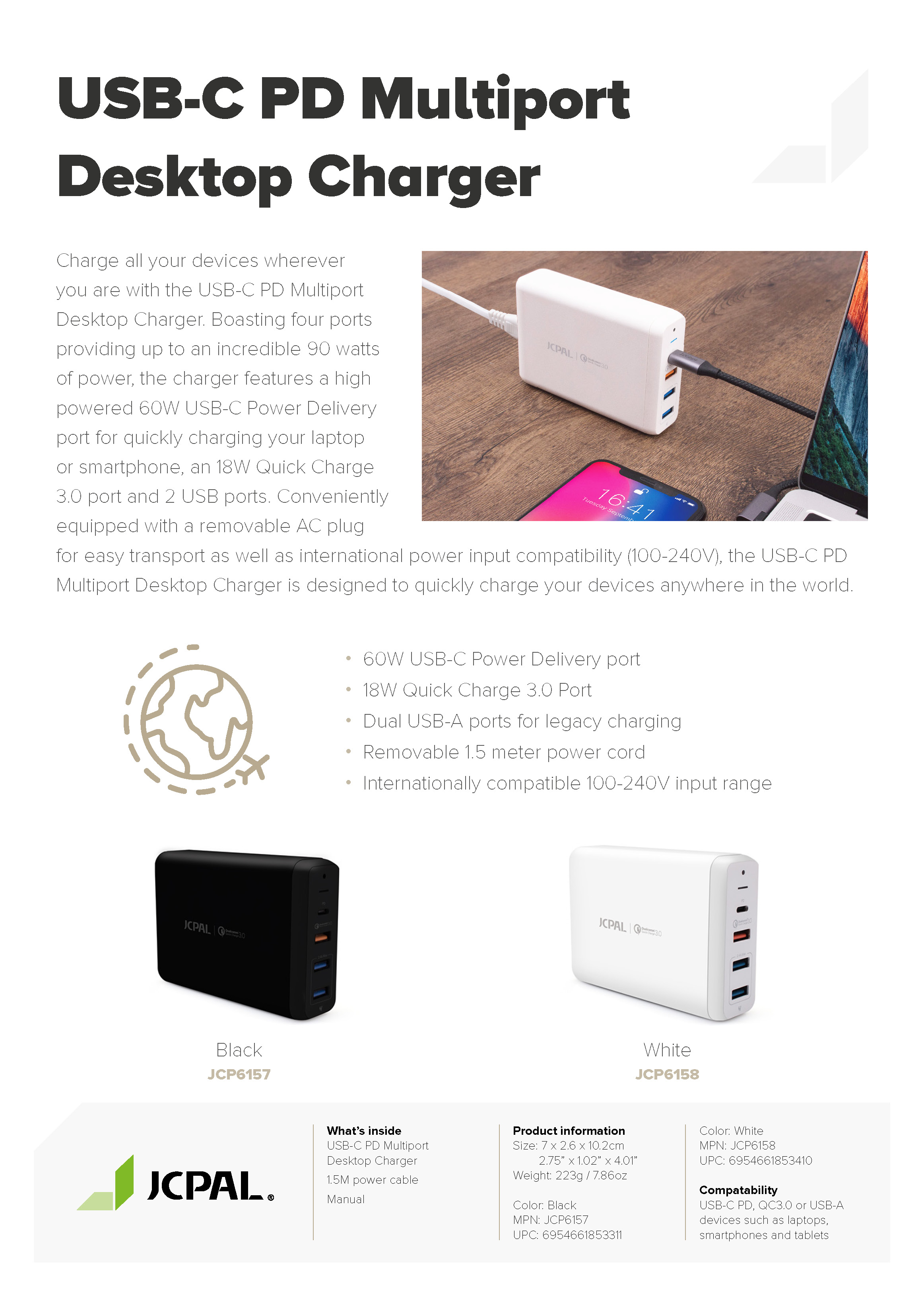 Để đáp ứng các nhu cầu về nạp năng lượng cho thiết bị của bạn khi di chuyển bên ngoài, nhà sản xuất JCPAL cho ra đời cốc sạc tiện dụng mang tên USB-C PD Multiport Desktop Charger.