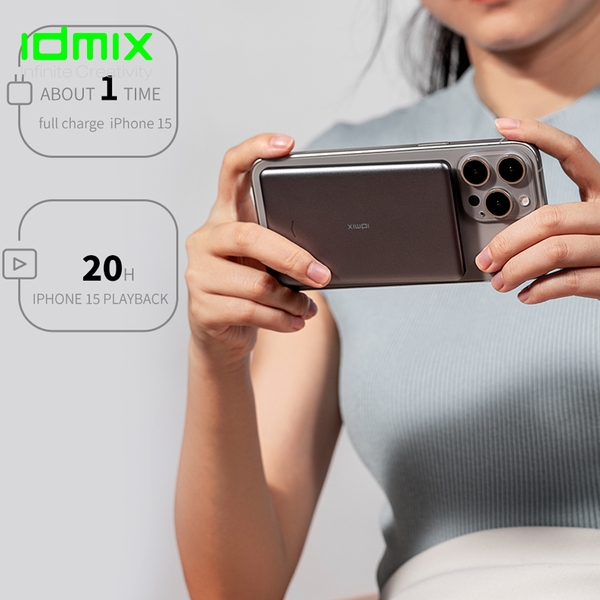 Pin dự phòng nam châm iDmix Power Magnetic Q5 Pro – 5 000 mAh, sạc không dây MagSafe 15 W & USB‑C PD, siêu mỏng nhẹ